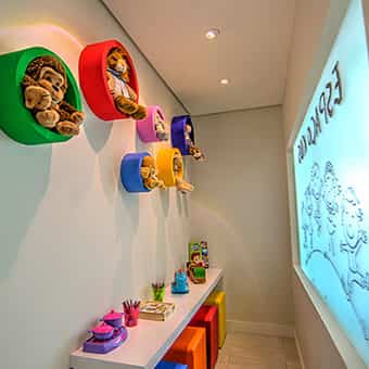 O ambiente também deve ser atrativo, ajudando a criança a se sentir tranquila e descontraída, pensando nisso criamos o ESPAÇO KIDS.